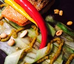 „In Orangenöl gegarte Lachsforelle mit Nussbutter-Mousseline & Schwarzwurzeln“